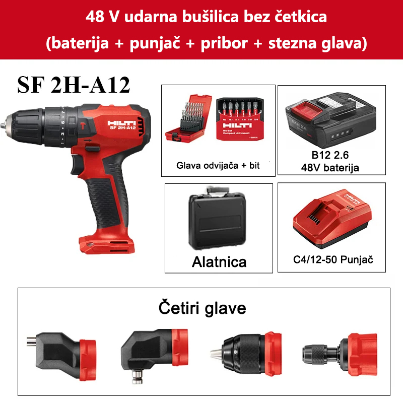 48 V Schlagbohrmaschine ohne Bürsten (Akku + Ladegerät + Zubehör + Bohrfutter)